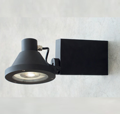 IP55 made of antique brown, night black, scurodivals and silver grey painted aluminium. for the wall version, it can be wired with G12 70W or 150W lamp with and adjustable head of diameter 300mm and wired with G8,5 35W or 70W 8° or 40° lamp, or V led.