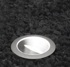 Inground uplight with a choice of stainless steel or aluminum, round or square front rings. To ensure efficient drainage, gravel must be used to a depth of 450mm. (17”) beneath the housing, and should also be placed around the luminaire.