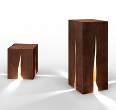 Outdoor lamp. The four light beams projected through the fissures on the sides make it particularly suitable for lighting drives or to create light effects in parks and gardens
