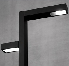 IP55 rated light fitting in AISI 304 stainless steel, available in antique brown, night black, scurodivals and silver grey finishes. it is 4500mm high, has an accessible terminal board and various accessories may be fitted to it, such as rubbish bins and wooden seats.
