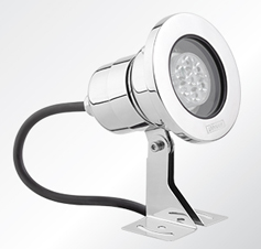 A compact surface underwater projector for lighting small pools and water jets of up to 2m/6.5ft in height. This is LED luminaires. Stainless steel grade 316 body.
