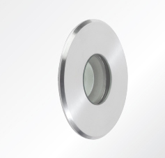 IP65 recessed interior and exterior downlight with a round front frame. This range offers options of a stainless steel or powder coated aluminum front frame.